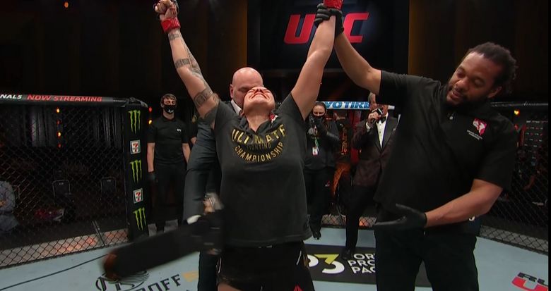 Aljamain Sterling hat seinen versprochenen Titelkampf. Der New Yorker ließ Cory Sandhagen im Contender-Kampf nicht den Hauch einer Chance. Sterling machte sofort Druck, drängte Sandhagen an den Zaun und sprang bereits in der ersten Minute auf dessen Rücken, wo er den Rear-Naked Choke ansetzte. Den ersten Versuch konnte Sandhagen noch abwehren, dann setzte Sterling jedoch neu an und dieses Mal gab es für Sandhagen kein Entrinnen mehr. Der Sieg für Sterling nach anderthalb Minuten.