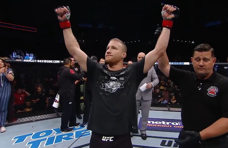 Der erste Titel in der UFC für Justin Gaethje, der den Interims-Titel direkt wieder ablegte und auf Nachfrage von Joe Rogan antwortete, dass er auf den richtigen Titel warte.