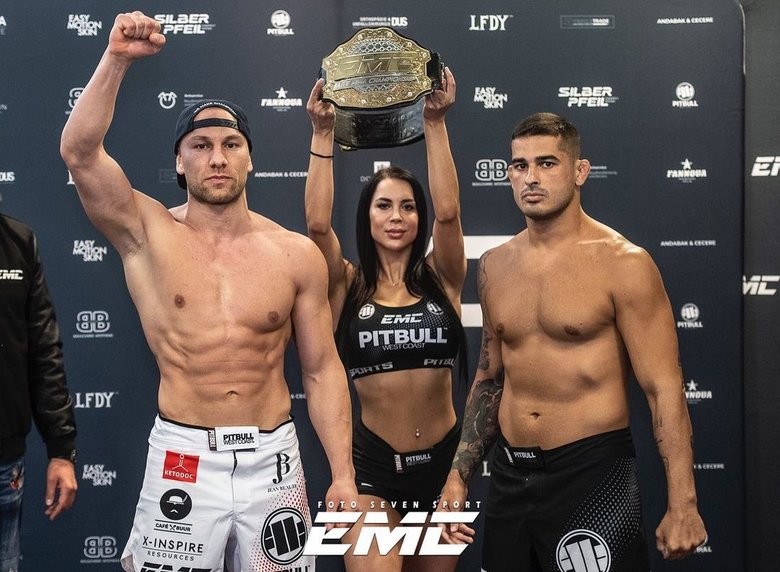 Kerim Engizek beherrschte von Beginn an das Geschehen und hielt seinen Kontrahenten aus Brasilien mit Push Kicks auf Distanz. Dann feuerte er mit harten Händen los, brachte Gabriel Barreiro in die Bedrouille. Dieser fand sich auf der Matte wieder, suchte einen Heel Hook gegen den stehenden Engizek, der allerdings gut verteidigte und selbst in die Offensive ging. Aus der Oberlage ließ der Lokalmatador Schläge herunterprasseln, doch Barreiro hielt weiter durch. Mehrere Minuten bearbeitete Engizek sein Gegenüber, brachte dann wenige Sekunden vor Schluss ein wuchtiges Knie zum Körper am Boden an sowie weitere Treffer zum Kopf, die den Brasilianer kampfunfähig machten. Der Referee brach die Begegung eine Sekunde vor dem Rundengong ab. Engizek sicherte damit den 10. Sieg in Serie und gleichzeitig das Gold von EMC im Mittelgewicht.