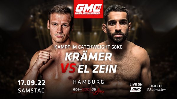 Sergej Krämer (5-4) erzählte im Preview-Video zu diesem Kampf seine teils emotionale Geschichte, wie er aus Usbekistan nach Deutschland kam, seine Leidenschaft zum Kampfsport, inspiriert durch Filme von Jackie Chan oder Bruce Lee, fand und dann selbst mit dem Kung Fu anfing. Dann kam Judo dazu und schlussendlich MMA. Inzwischen ist der 30-Jährige besonders bekannt für seine Bodenfertigkeiten und will sich damit in seinem 10. Profikampf mit Osama El Zein (6-3) messen. Dieser bestreitet ebenfalls seinen 10. Kampf, ist ebenso ein Allrounder und GMC-Fans bestens bekannt.
