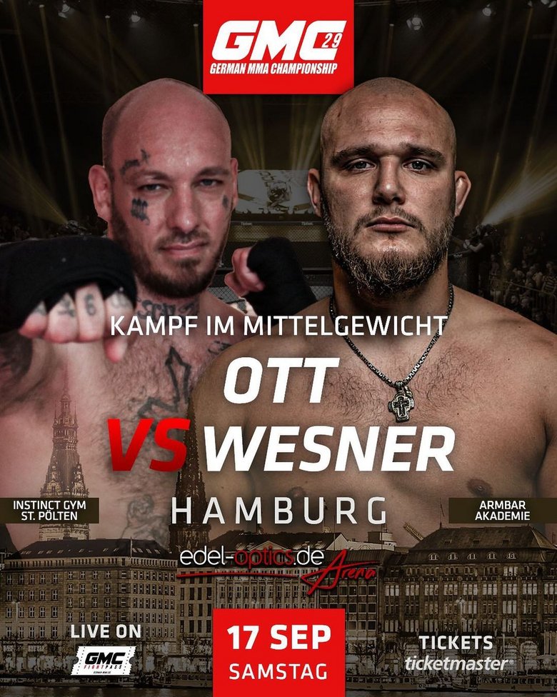 Wesner hat bereits siebenmal für GMC gekämpft, nur zweimal musste er sich geschlagen geben. Zum einen war es Sascha Massafra, zum anderen Michael Smolik – zwei athletische Kämpfer, die generell schwer zu knacken sind und gegen die der Mann von der Armbar Akademie auch im Halbschwergewicht angetreten ist. Inzwischen kämpft Wesner im Mittelgewicht und wirkt damit agiler als je zuvor. Neben einer besseren Kondition, überzeugte der 25-Jährige zuletzt auch durch ein offensichtlich deutlich gesteigertes Selbstbewusstsein, mit dem er drei Gegner in Serie vorzeitig schlug. Dieses wird er brauchen gegen den erfahrenen Ott, der sich inzwischen zwar im Herbst seiner Karriere befindet, doch noch keineswegs abgeschrieben werden darf.