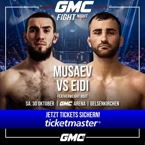 Adlan Musaev hat jedoch eigene Pläne. Zwar hat er nicht die Erfahrung als Profi wie sein Gegenüber vorzuweisen, doch teilt er im Käfig aus, als gäbe es kein Morgen mehr. In seinem letzten Duell schickte er Amir Khan Atai nach viereinhalb Minuten ins Land der Träume und machte damit deutlich, aus welchem Holz er geschnitzt ist. Er kommt nicht nach Gelsenkirchen, um zu verlieren, sondern will seine junge Karriere mit einem Sieg über einen bekannten Namen weiter vorantreiben. Ob er Eidis Kinn testen wird, oder ob er sich bei diesem Duell übernommen hat, erfährt man am 30. Oktober.