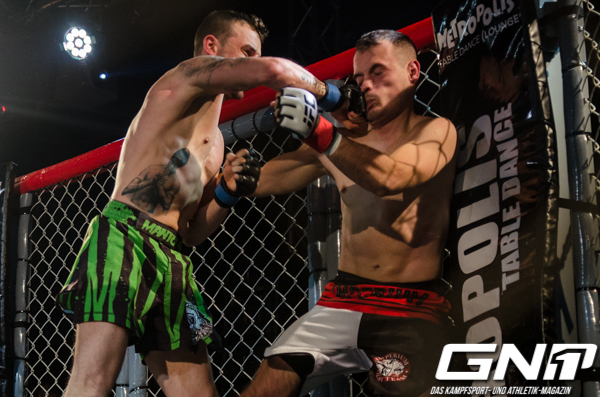 Kurz aber rasant war der Kampf zwischen Markus Zeising (la familia Fightclub Halle) und dem Franzosen Tom Pedreno (Fighting Top Team). Zeising und Pedreno tauschten zunächst im Stand aus, aber nach Treffern auf beiden Seiten ging es zügig auf die Matte. Dort erarbeitete sich Zeising einen Armhebel, gegen den sich Pedreno eine Weile wehrte, aber schließlich nach 1:30 Minuten abklopfte.