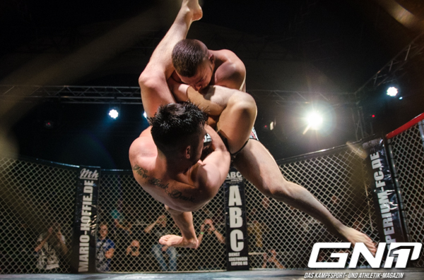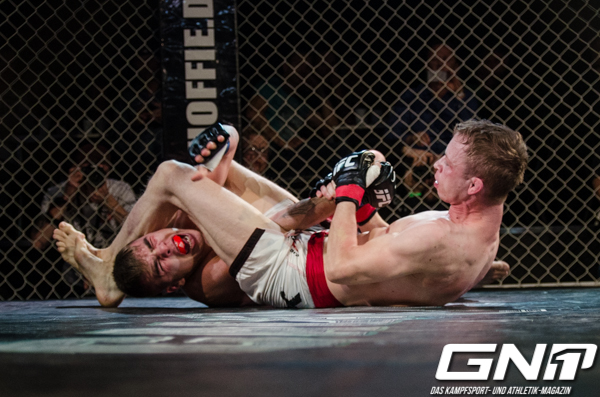 Bei den schweren Jungs kam es zu einem Kampfende, das man so bestimmt noch nicht gesehen hat. Nachdem der Leipziger Chris Püchner (Imperium Fight Team) mit einem Takedown den Bodenkampf initiiert hatte, gelang Stefan Effenberger (Knox Gym) durch ein Scramble in die Reverse Side Control. Aus dieser Position ließ „Effe“ seinen Gegner nach 1:26 Minuten abklopfen, indem er dessen Knie und Hüfte mit einem Hebel blockierte.