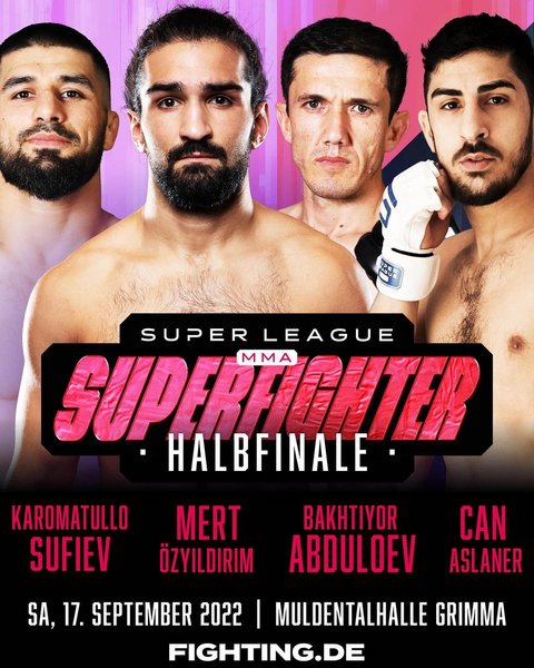 Super League MMA lud am 17. September zur vierten Ausgabe ein. Im Fokus in der Muldentalhalle im sächsischen Grimma stand hier das Halbfinale des Federgewichtsturniers, das dem Gewinner 25.000 Euro einbringen wird. Mert Özyildirim sprang gegen Karomatullo Sufiev ein. Can Aslaner bekam seine Chance gegen Bakhtiyar Abdulaev.