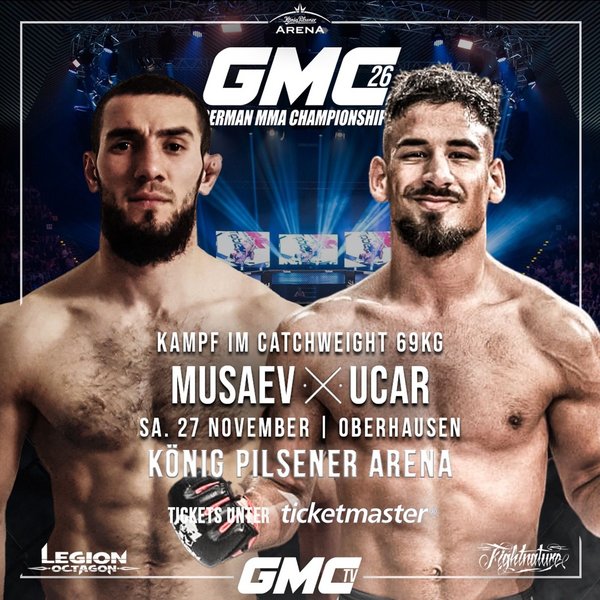 Adlan Musaev (2-0) stand am 30. Oktober im Hauptkampf der 11. GMC Fight Night. Dort war er siegreich gegen den favorisierten Said Eidi. Der schlagstarke Tschetschene, der für den Fußballverein FSV Viktoria Hof spielt, überzeugte sowohl im Stand, als auch auf dem Boden und zeigte seine Routine im Käfig, die seine Bilanz so nicht hergibt. Eben deshalb wird er von Kontrahenten unterschätzt und dann droht jenen ein böses Erwachen. Jenen Alptraum will Musaev auch seinen nächsten Kontrahenten durchmachen lassen und seine lupenreine Bilanz weiter ausbauen. Dafür bekommt er die Chance, nur knapp einen Monat nach dem letztem Einsatz, bei GMC 26, wo ihm einen weiterer junger Wilder vorgesetzt wird, in Form von Cagri Ucar.
