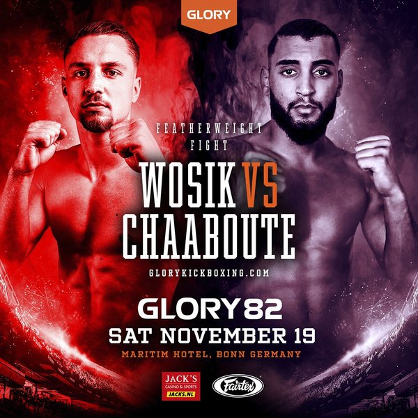 Aus deutscher Sicht äußerst interessant: Denis Wosik steigt wieder ins umseilte Viereck. Der 25-Jährige vom Amrani Palace wird mit dem zwei Jahre jüngeren Marokkaner Hicham Chaaboute im Federgewicht kollidieren. Dieser war für Enfusion unterwegs und gibt nun sein GLORY-Debüt. Wosik hingegen war zuletzt in Düsseldorf zu sehen, wo er bei GLORY 81 Naoki Seki nach Punkten schlug.
