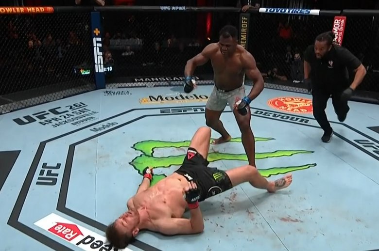 Dann legte der Herausforderer nach. Ein linker Haken warf Miocic rücklings um, eine Hammerfist besiegelte das Schicksal des bereits bewusstlosen Champions nach nur einer Minute in der zweiten Runde. Neuer Champion im Schwergewicht, Francis Ngannou.
