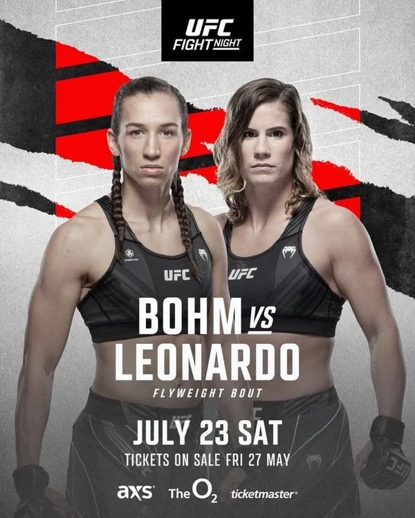 Mit Victoria Leonardo (8-4) steht ihr eine Bellator- und Invicta FC-erfahrene US-Amerikanerin vor der Flinte, die sich durch Dana Whites Contender Series zum Branchenprimus gekämpft hat. In der UFC unterlag sie bislang in beiden Auftritten. Gegen Manon Fiorot wurde sie ausgepunktet und in Runde zwei aus dem Kampf genommen, gegen Melissa Gatto verlor sie aufgrund einer Armverletzung. Für sie ist der Arbeitsplatz in Gefahr. Sollte sie gegen die Deutsche versagen, bekommt sie höchstwahrscheinlich die Papiere.